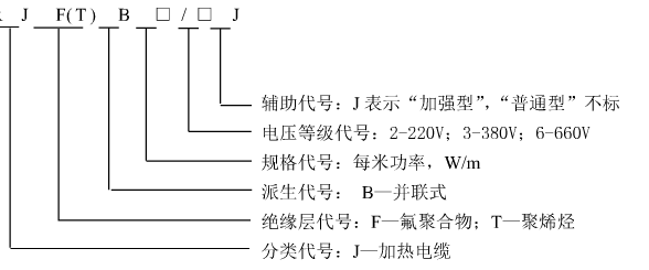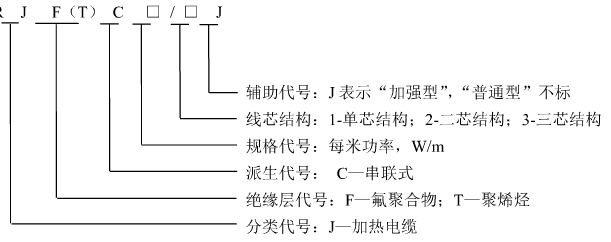 ◆ 基本伴熱型由芯帶和絕緣結(jié)構(gòu)的伴熱帶,用“J”表示