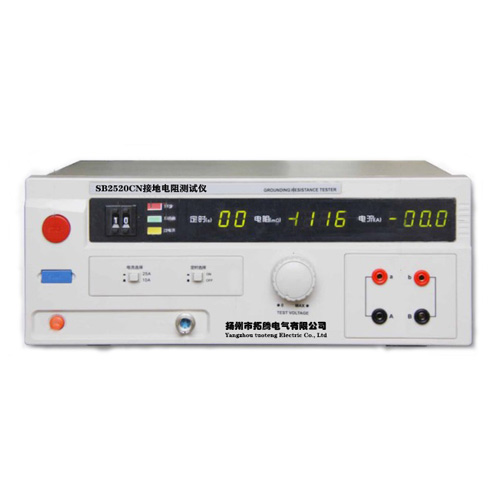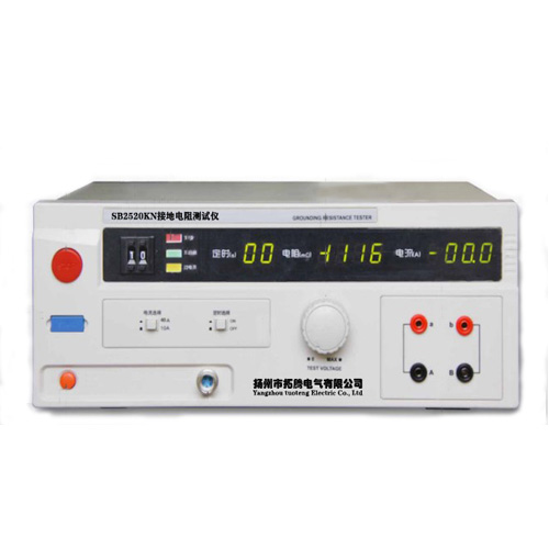 接地電阻測試主要測量器具接地線與機殼之間的接觸點的電阻。測量的方式是依照歐姆定律,在接觸點上流過一個電流,然后分別測量電流和接觸點的電壓值,再依照歐姆定律計算出電阻值,通常是流過一個較大的電流,模擬器具發(fā)生異常時所出現的異常電流狀況,做為測試的條件。適用于測量各種電機、電器、儀器儀表、家用電器