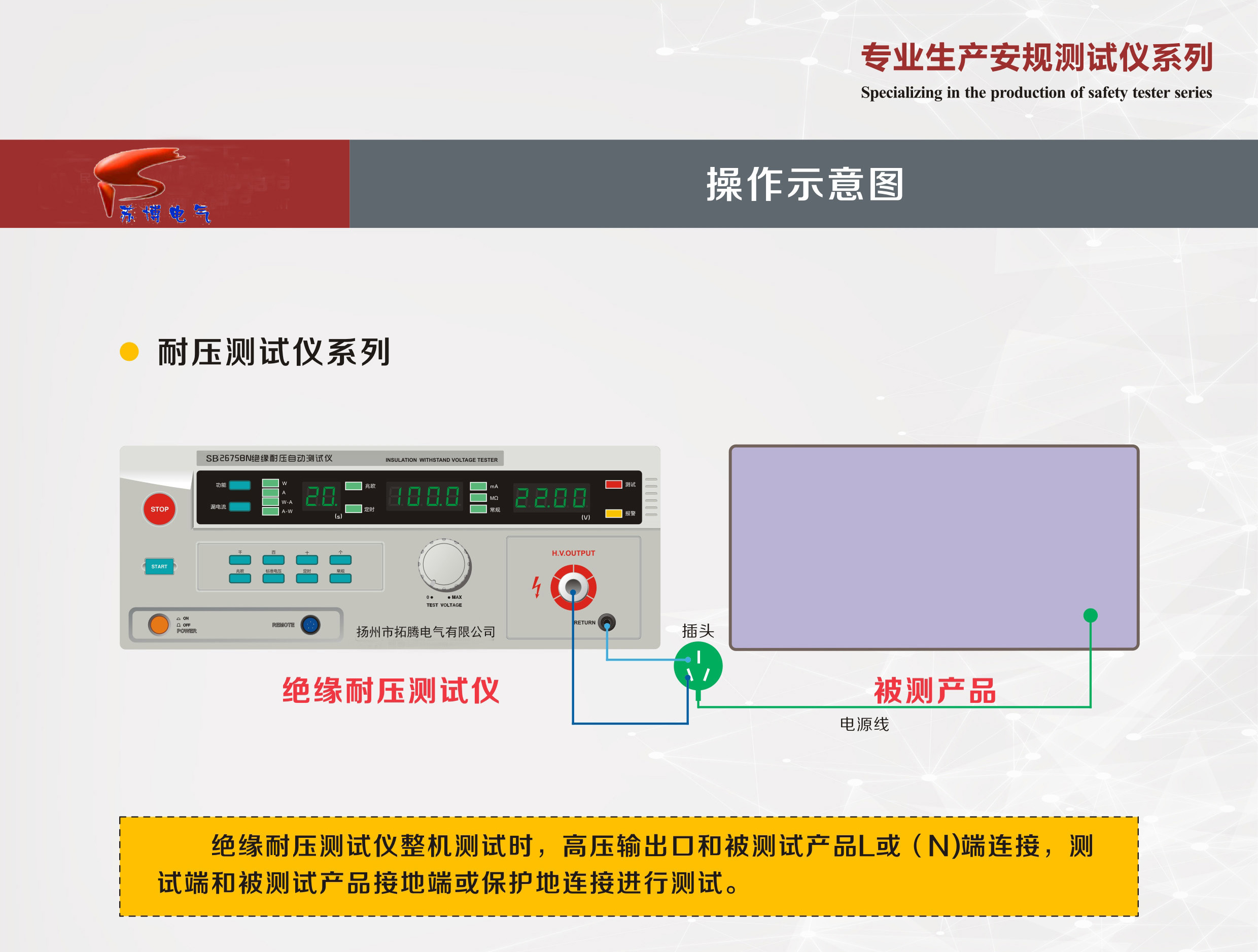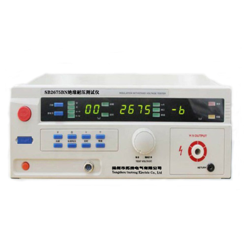 SB2675BN/SB2675CN型絕緣耐壓自動(dòng)測試儀是用來測量各種電器產(chǎn)品的耐壓(WITHSTANDING VOLTAGE簡稱“W”)和絕緣(INSULATION,簡稱“I”)。 測試過程中采用單片機(jī)自動(dòng)控制電路、自動(dòng)轉(zhuǎn)換,自動(dòng)數(shù)據(jù)處理,一次完成耐壓試驗(yàn)及漏電流、絕緣電阻的測試,尤更適用于自動(dòng)生產(chǎn)線使用。 操作使用方便,特別適用家用電器、儀器儀表、元器件、電線電纜等各種電器設(shè)備等產(chǎn)品的測試,當(dāng)配用適當(dāng)?shù)臋z測頭,亦可用于化工材料產(chǎn)品的耐壓和絕緣電阻的測試。