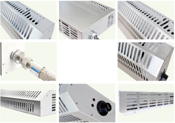 防水室內(nèi)電加熱器是一種用于濕度大,工作環(huán)境水四濺的環(huán)境中;產(chǎn)品由防水電熱板、防水接線盒、防護機殼組成。其中防水電熱板是一種整體金厲淺注電熱板,內(nèi)部發(fā)熱元件為特定形狀的英格萊840電熱營,電熱管整體被純鋁'澆筑制成電熱板,經(jīng)過淺筑后電熱管與純鋁形成整體。防水接線盒與機殼整體焊接,并采取特殊密封方式,全方位阻止水等液體進去控制器;電源線經(jīng)防水接頭接入接線盒。