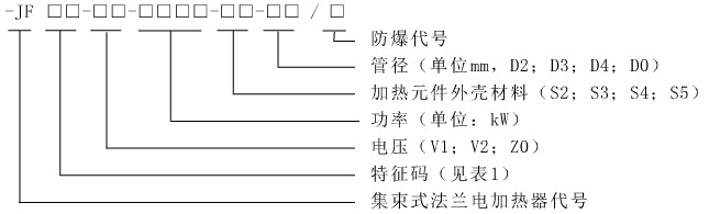 防爆代號:防爆電加熱器:Y;非防爆加熱器:N