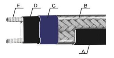 D-高分子材料發(fā)熱芯 E-母線(鍍錫銅絞線)